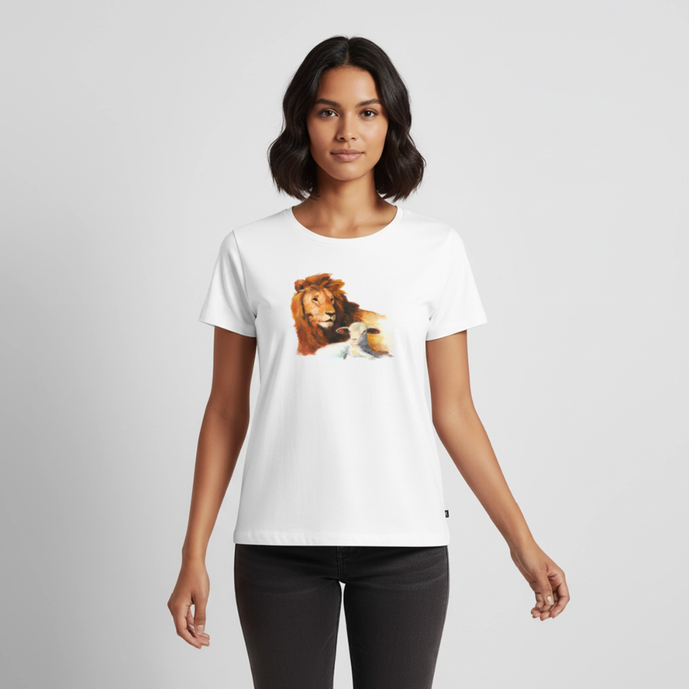 Frauen Premium T-Shirt • Löwe & Lamm • Fairtrade - Weiß